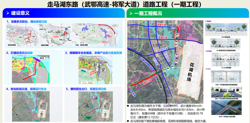 作為鄂州臨空區(qū)“五橫六縱”骨架路網(wǎng)的關(guān)鍵組成,相關(guān)道路工程將筑牢花湖機(jī)場(chǎng)集疏運(yùn)體系,串聯(lián)機(jī)場(chǎng)貨運(yùn)區(qū)、綜保區(qū)、高鐵東站及高速出入口,完善“空鐵公水”多式聯(lián)運(yùn),支撐國際航空貨運(yùn)樞紐輻射能力;同時(shí)銜接航空物流、智能制造等核心園區(qū),配套綜合管廊、智慧市政設(shè)施,推動(dòng)產(chǎn)城融合與民生改善,強(qiáng)化武鄂黃黃交通一體化銜接,助力武漢新城建設(shè),加速鄂州從傳統(tǒng)工業(yè)城市向臨空經(jīng)濟(jì)強(qiáng)市轉(zhuǎn)型,為區(qū)域“十四五”港產(chǎn)城一體化發(fā)展提供堅(jiān)實(shí)支撐。